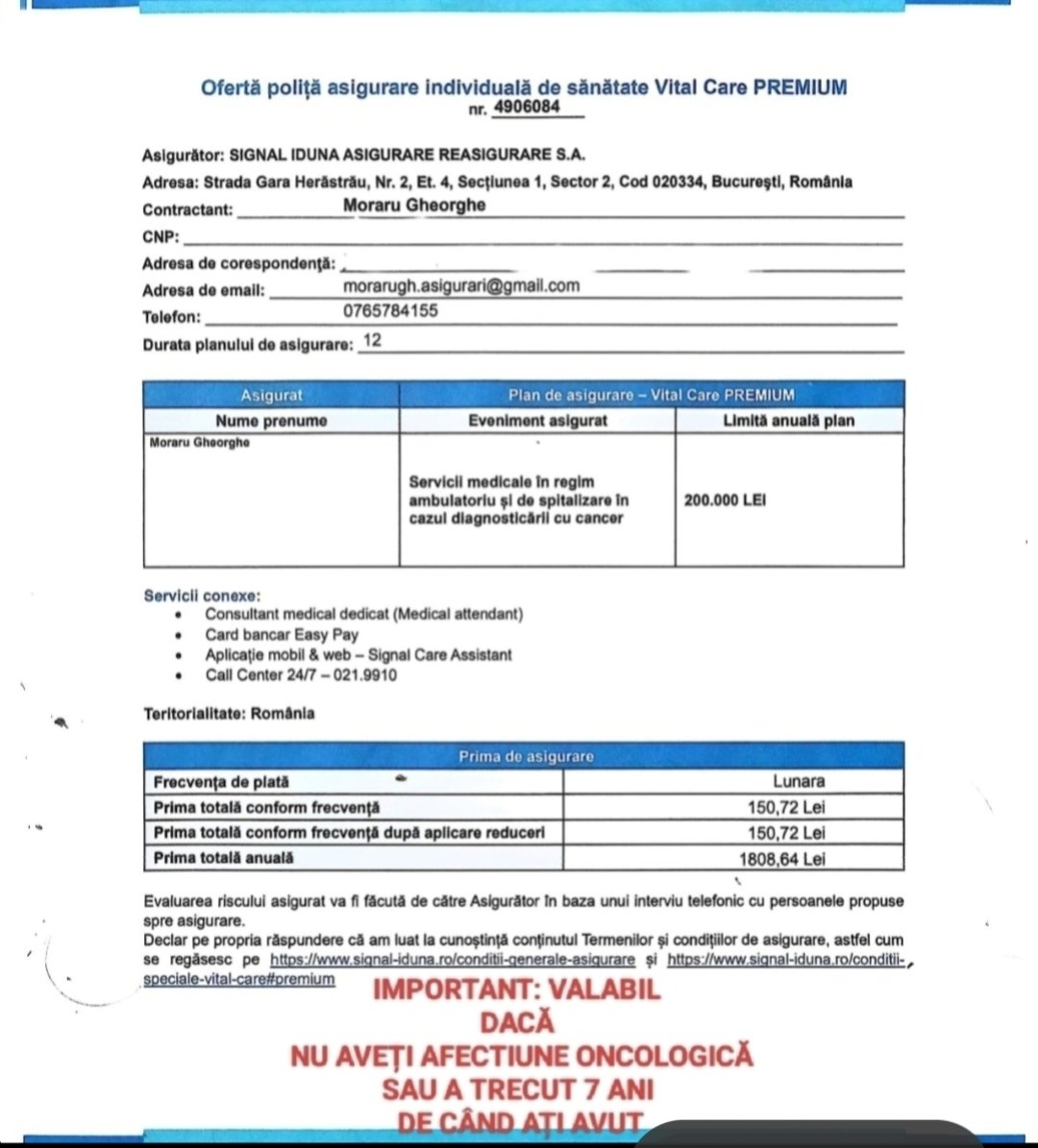 Și eu mi-am făcut o astfel de asigurare, ca să nu fiu povară cuiva, și să nu ruinez familia🕳️, aveți în poză asigurarea mea, vă recomand și vouă dragilor, paza bună trece primejdia rea!